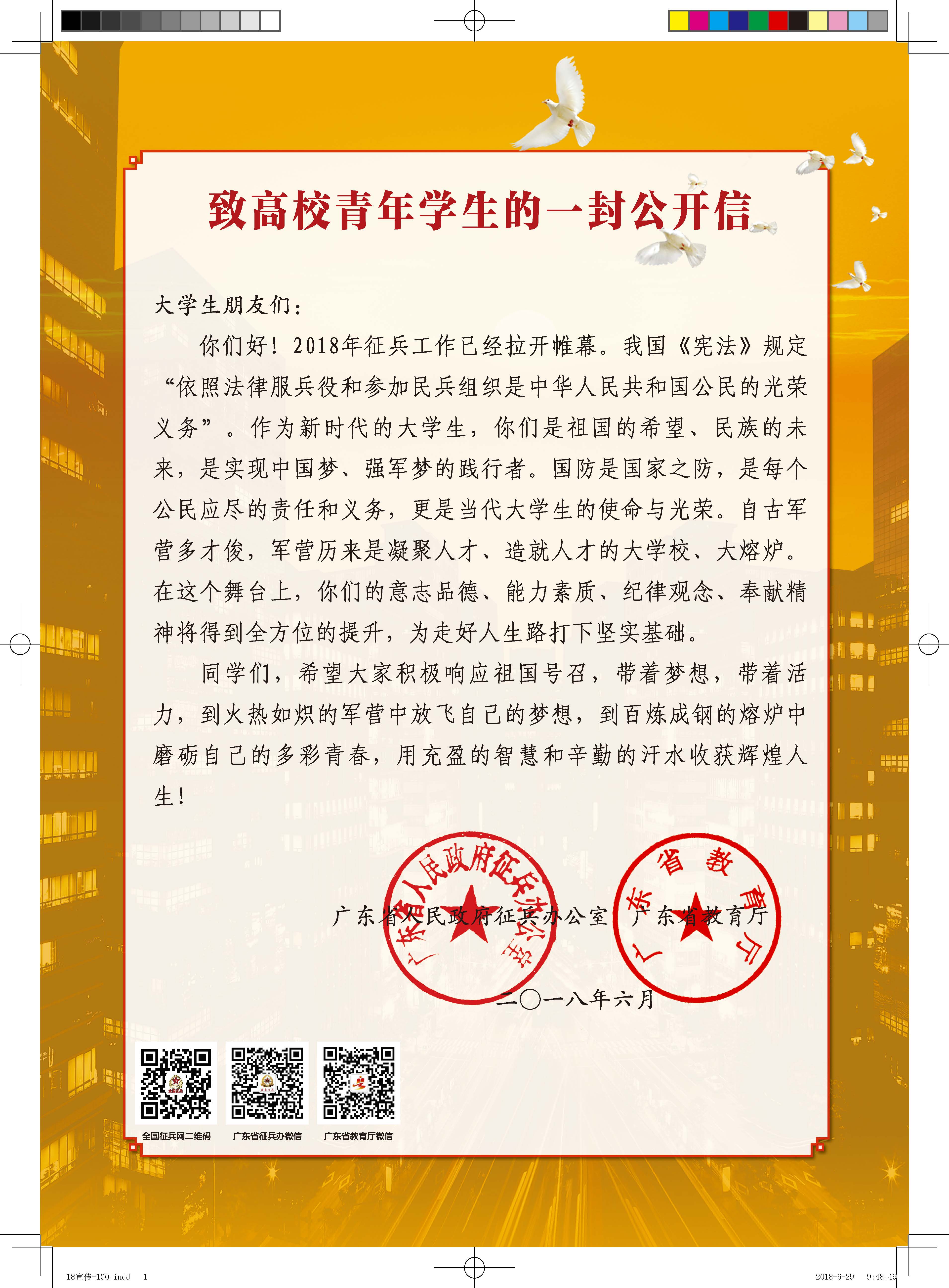 2018年《大学新生应征入伍宣传单》和《致高校青年学生的一封公开信》